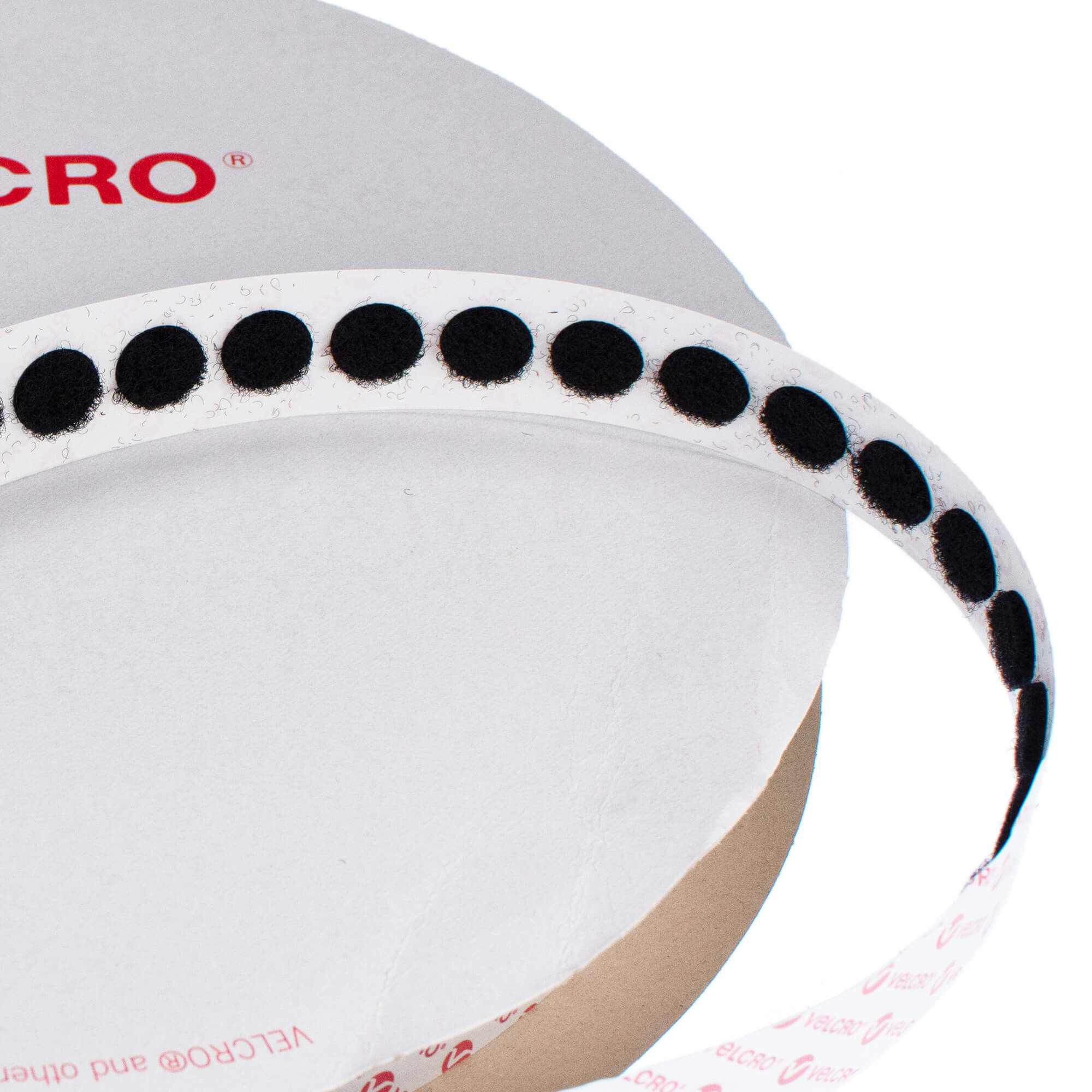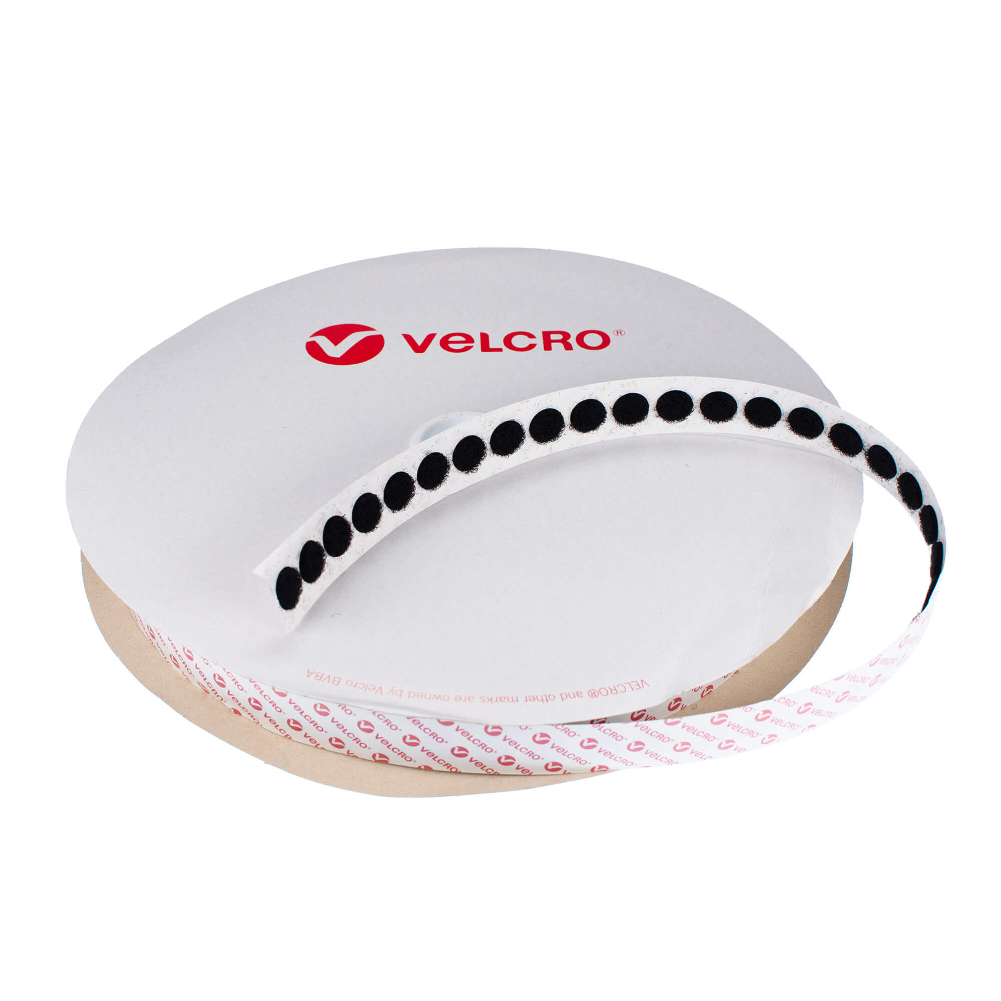 General purpose PS14 stick-on black 13mm VELCOIN® loop side coins, these are die-cut on 25 metre rolls that contain approx 1500 loop dots. Suitable for use on most surfaces including paper, card, rigid plastic, glass and metal. VELCRO® Brand coins are widely used for crafts, schools and colleges they are also used widely in the exhibition, display and packaging industry.