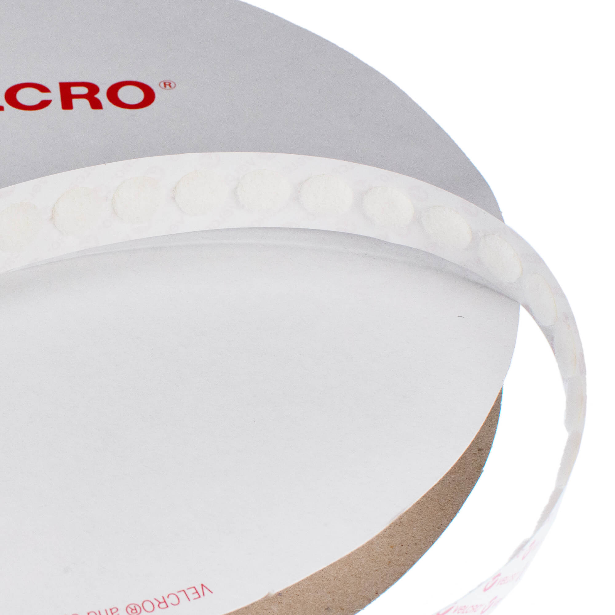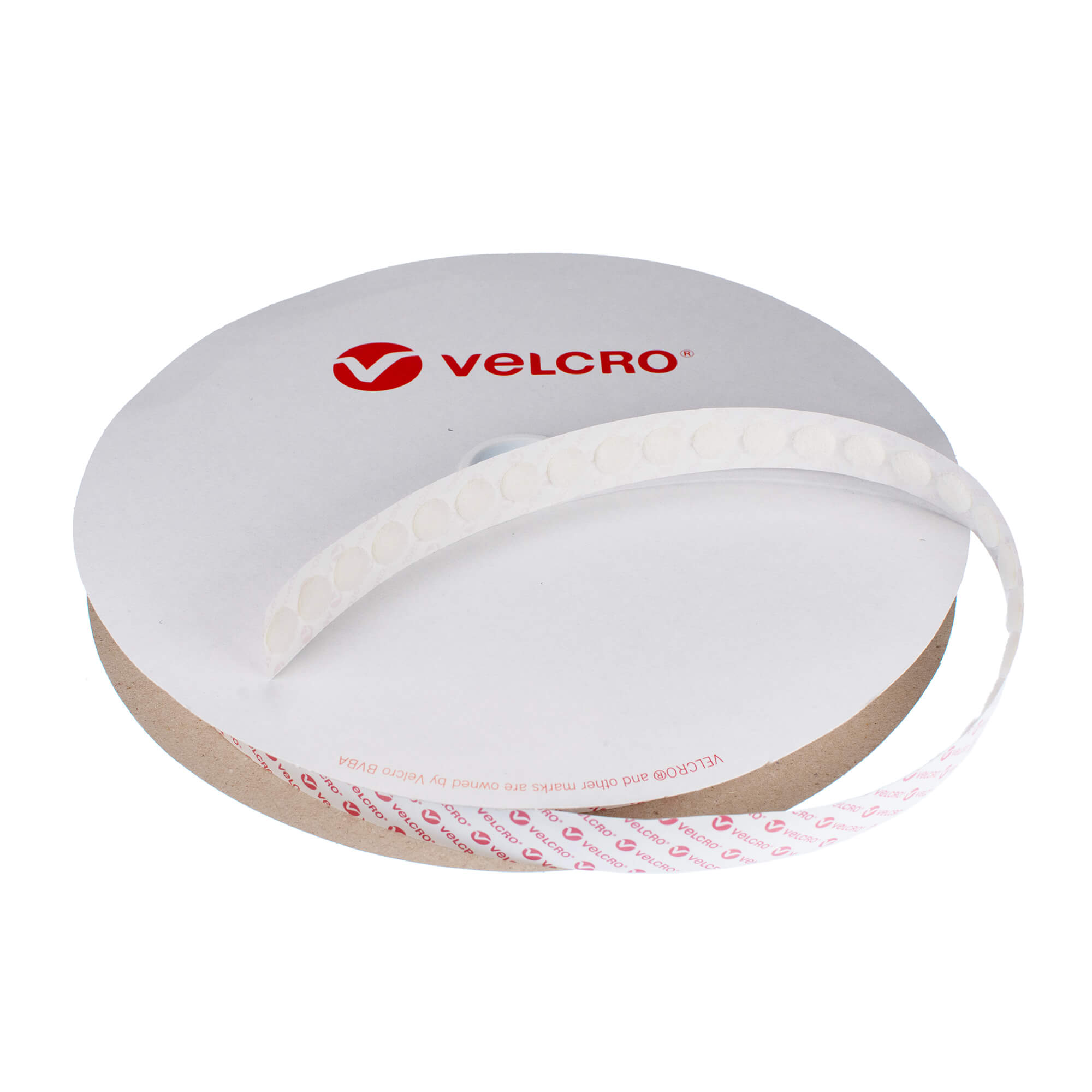 General purpose PS14 stick-on white 13mm VELCOIN® loop side coins, these are die-cut on 25 metre rolls that contain approx 1500 loop dots. Suitable for use on most surfaces including paper, card, rigid plastic, glass and metal. VELCRO® Brand coins are widely used for crafts, schools and colleges they are also used widely in the exhibition, display and packaging industry.