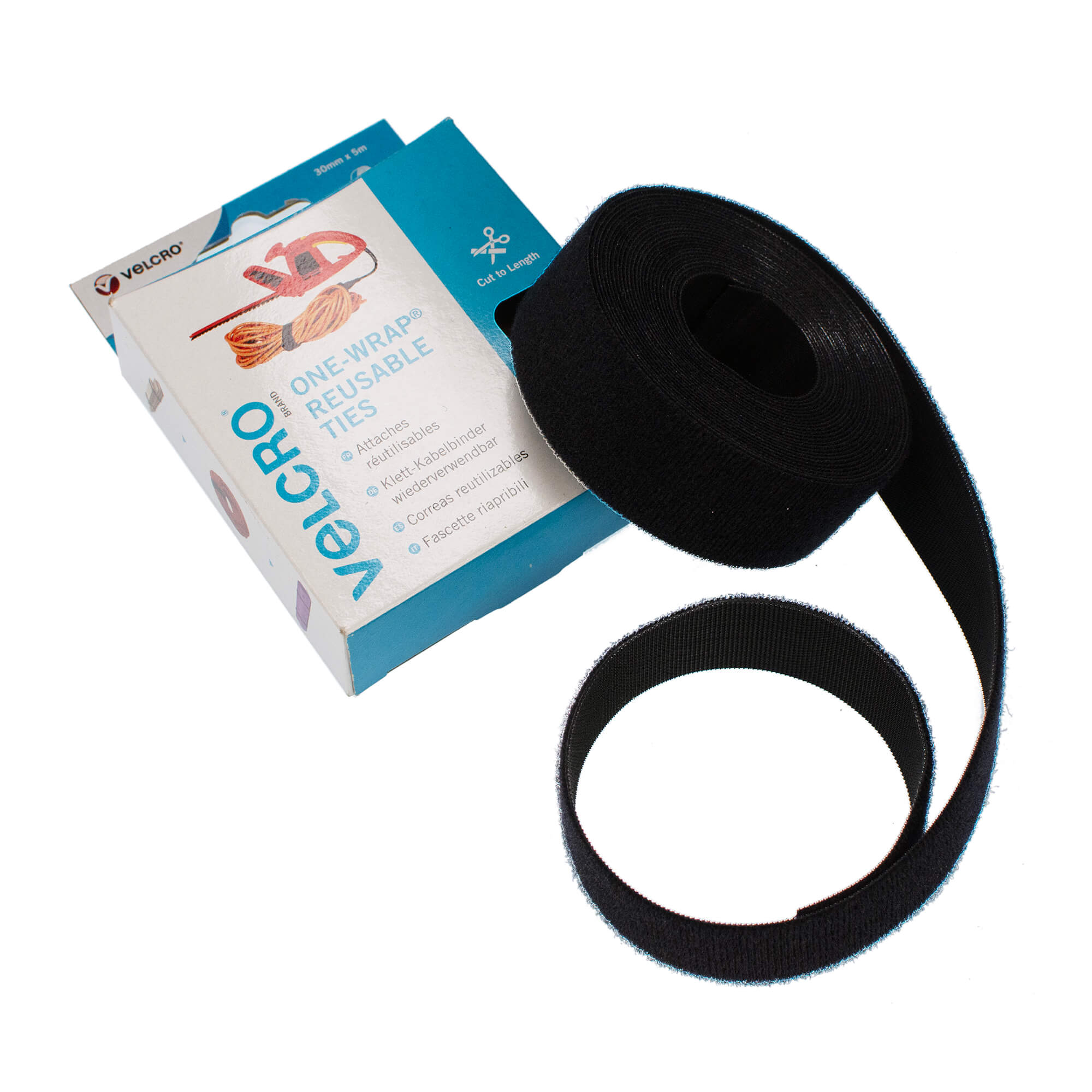 Unlike pre-cut ties, this roll allows you to cut exactly the length required. Simply trim the tape, wrap it around the bundle and press the hook side onto the loop side to create a secure and adjustable fastening.