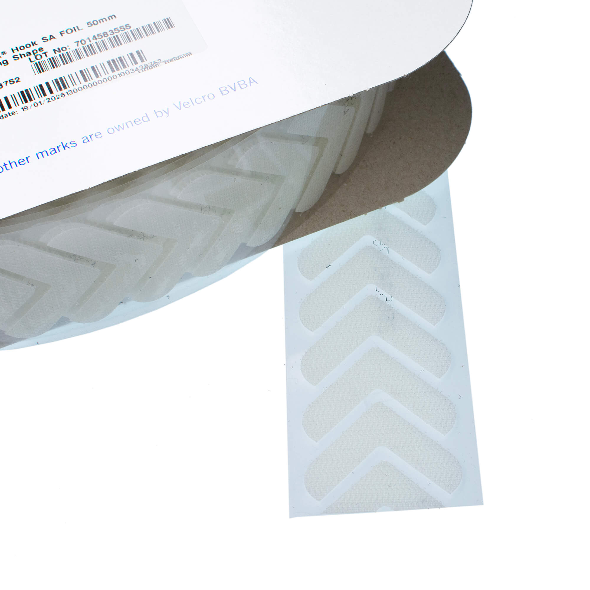 Our VELCRO® Brand White Stick-On Chevron Hook Tape is supplied on a 25 metre roll, providing a clean, discreet fastening solution where appearance matters.